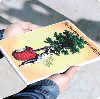 A hand-bound publication featuring the evocative writing of Hilton Als, of The New Yorker, entitled "Nan Goldin’s Life in Progress." The text is accompanied by stunning, deeply personal photographs captured by Nan Goldin herself. The publication itself features a clean and simplistic layout design, allowing the story and imagery to shine, and speaking to Goldin's blunt artist style. Graphic, intimate moments are encapsulated in small quad-folds throughout the piece to create a sense of privacy and preciousness throughout the story.